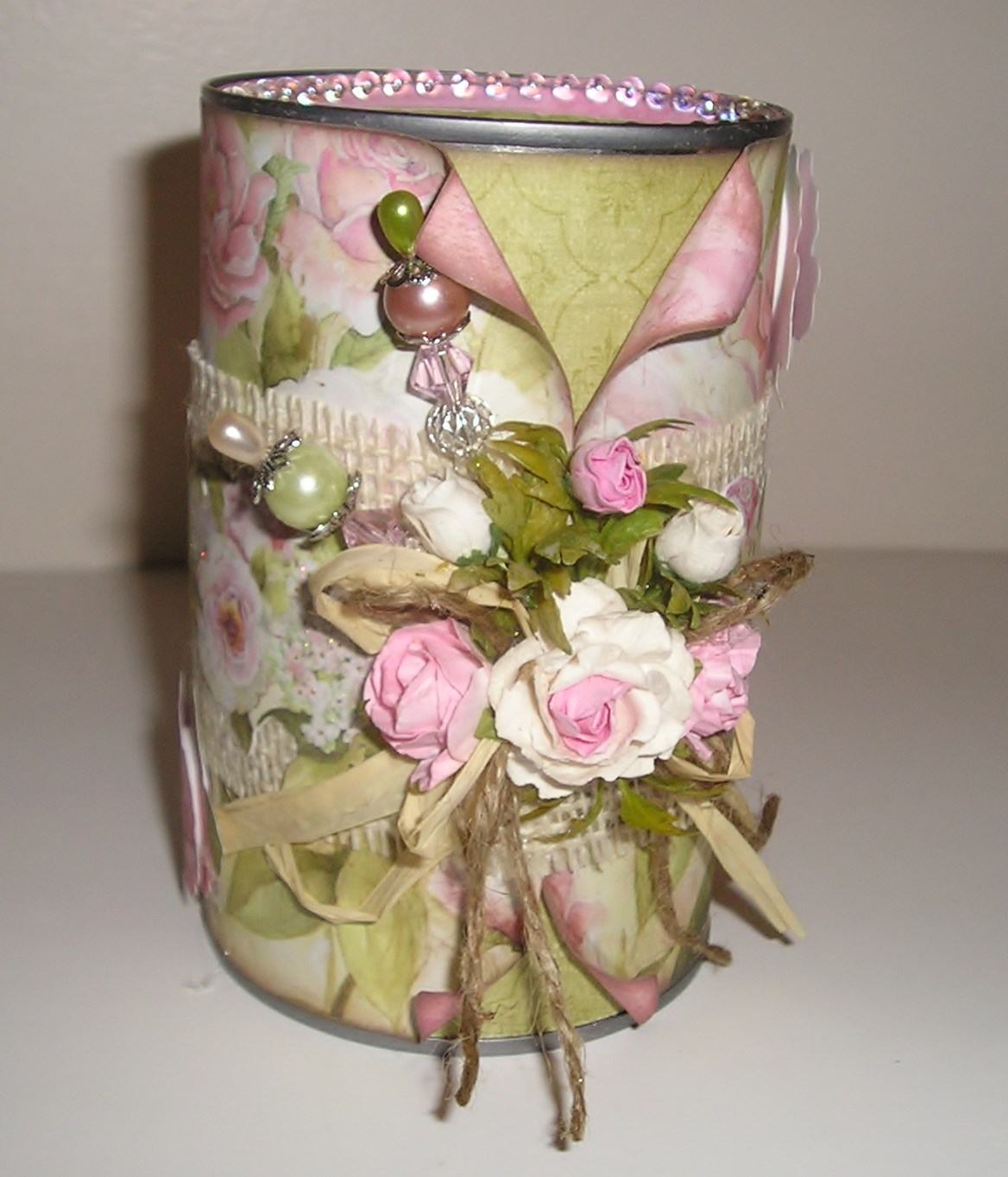 I added circles to the top of each letter to form a charm, then ran the letters through very thin white ribbon. "Tee", you ask? Well, she was my swap partner and I really wanted to personalize it just for her! Liquid pearls gave a polka-dot effect to the handle and the butterfly and lavender roses added just the right touch of "girly" to my brush.